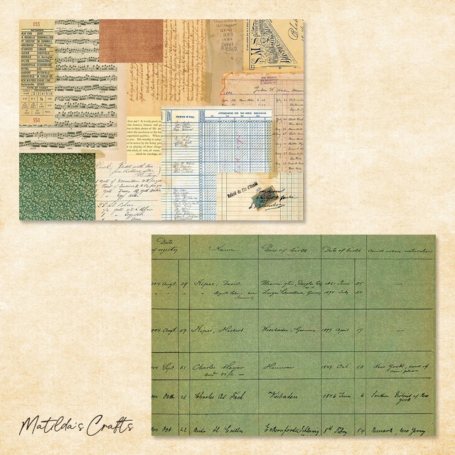ヴィンテージペーパーがコラージュされたデザインペーパーです。 裏面はモスグリーンのヴィンテージペーパーになっています。 コラージュ、おすそ分けファイル、ラッピング等にいかがでしょうか。 【枚 数】10枚セット(両面) 【サイズ】A4サイズ 【素 材】上質紙・90kg 【備 考】印刷会社で印刷して頂いています ※印刷物は画像の色味と実物の色味に違いが生じる場合があります。予めご了承ください。 【商品のご利用について】 商品のコピー使用、コピーの配布などは禁止しております。 また、デザインペーパーをそのまま転売することはできません。 ご自身のハンドメイド作品に使い、それを販売することは可能です。 使用方法にご不明な点がありましたらお気軽にお問合せください。 【発送について】 クリックポストで発送いたします。