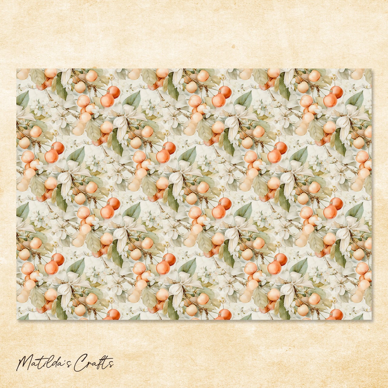 やさしい色合いのさくらんぼ柄のデザインペーパーです。