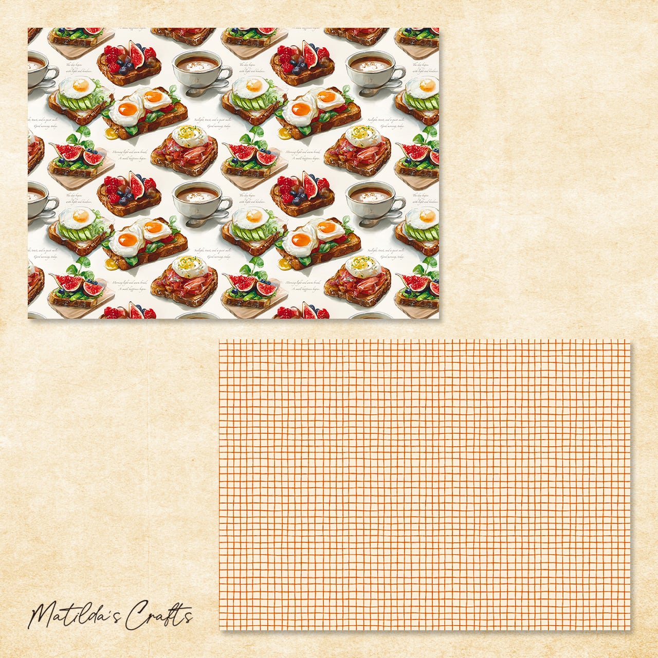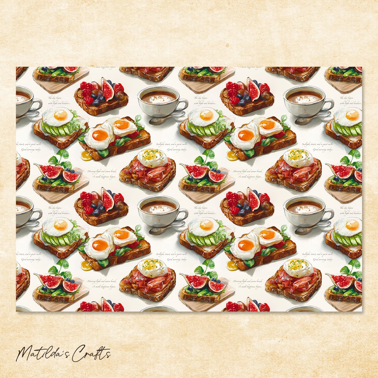 美味しそうなオープンサンドとコーヒーがおしゃれなカフェ風デザインペーパーです。