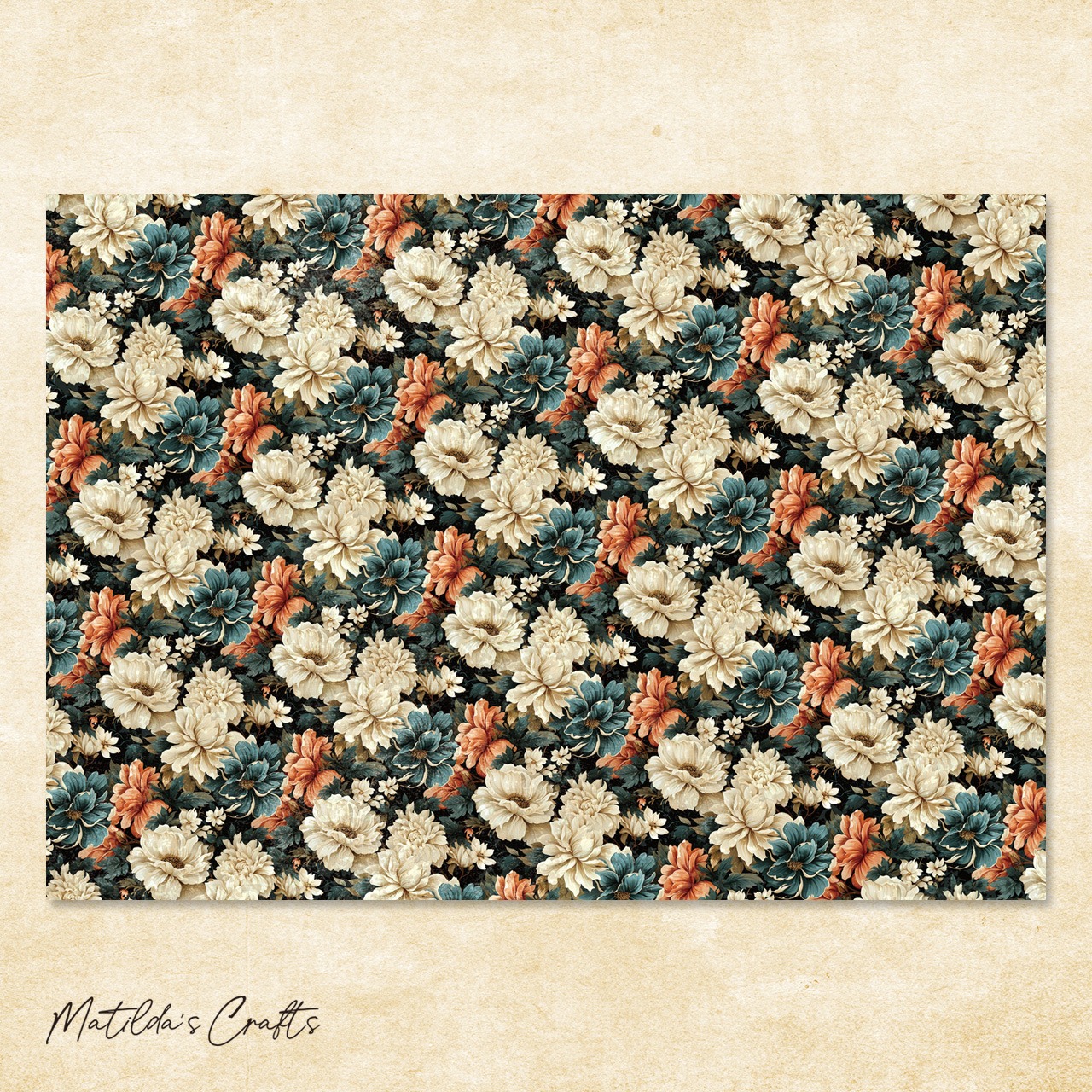 表はゴージャスな花柄、裏はモノトーンの水玉模様をヴィンテージ風に加工したデザインペーパーです。