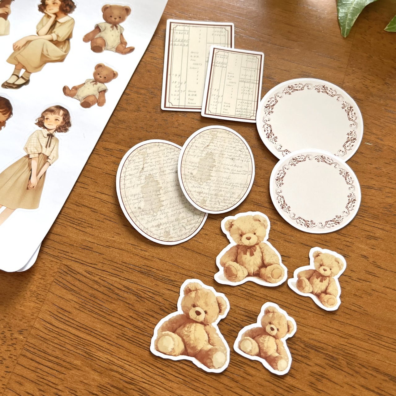 女の子やテディベアが可愛いスクールガールシールです。手帳やコラージュなど色々な用途でお使いいただけます!